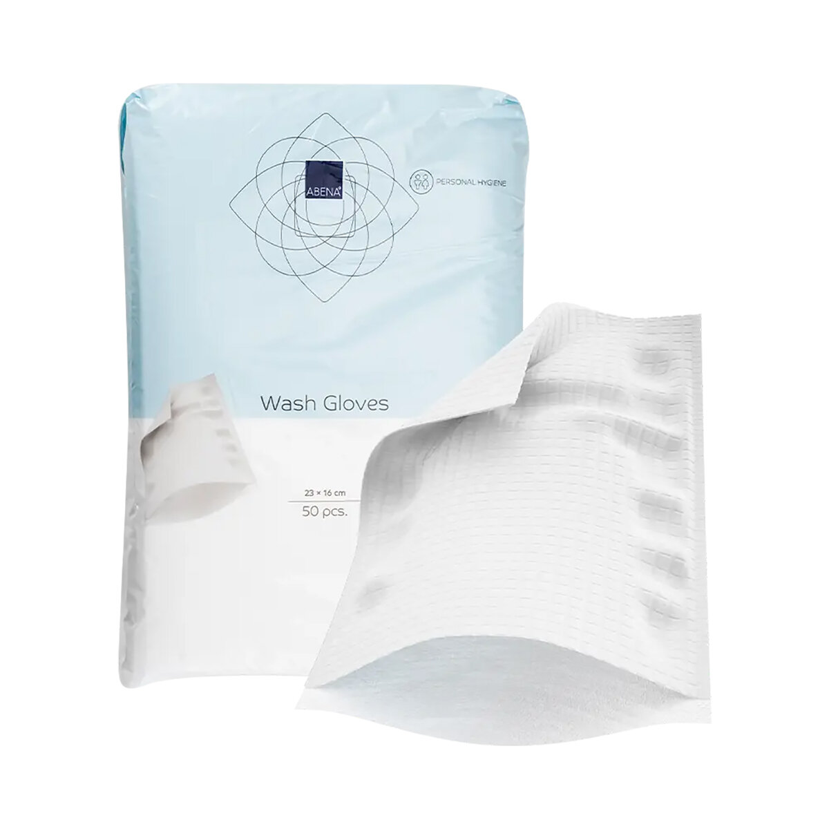 Abena Premium rokavice za umivanje brez folije so izdelane mehke mešanice viskoze in poliestra (50% viskoza, 50% poliester). Material rokavic je izredno mehek in zato zelo primeren za osebno higieno bolnikov in otrok. Umivalne rokavice se odlikujejo po veliki zmožnosti vpijanja tekočine, zato se lahko uporabljajo tako za umivanje kot tudi za brisanje. Zaradi same oblike se med uporabo lepo oblikujejo po roki negovalca.