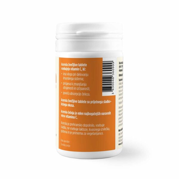 Acerola prehransko dopolnilo vsebuje vitamin C v okusnih žvečljivih tabletah za vse družinske člane. Acerola je sadež, ki vsebuje kar 30-krat več vitamina C kot pomaranča.
