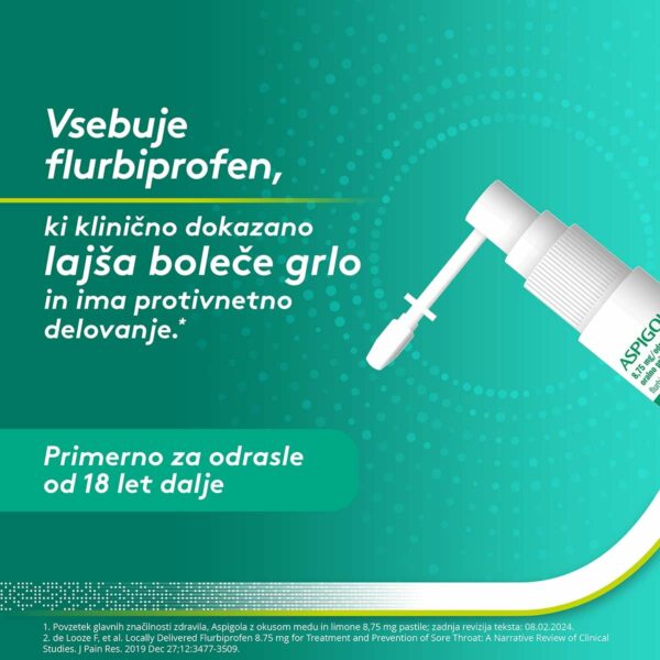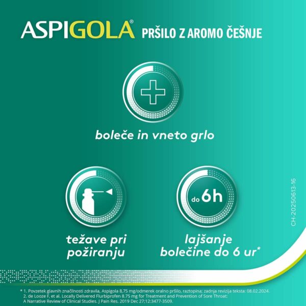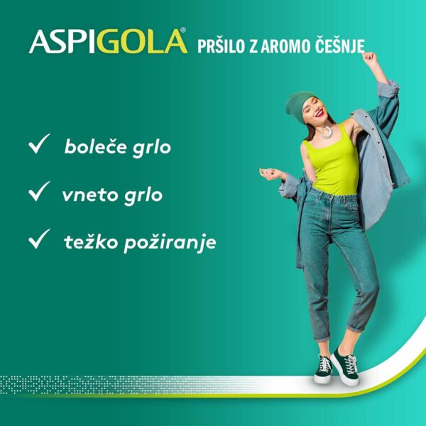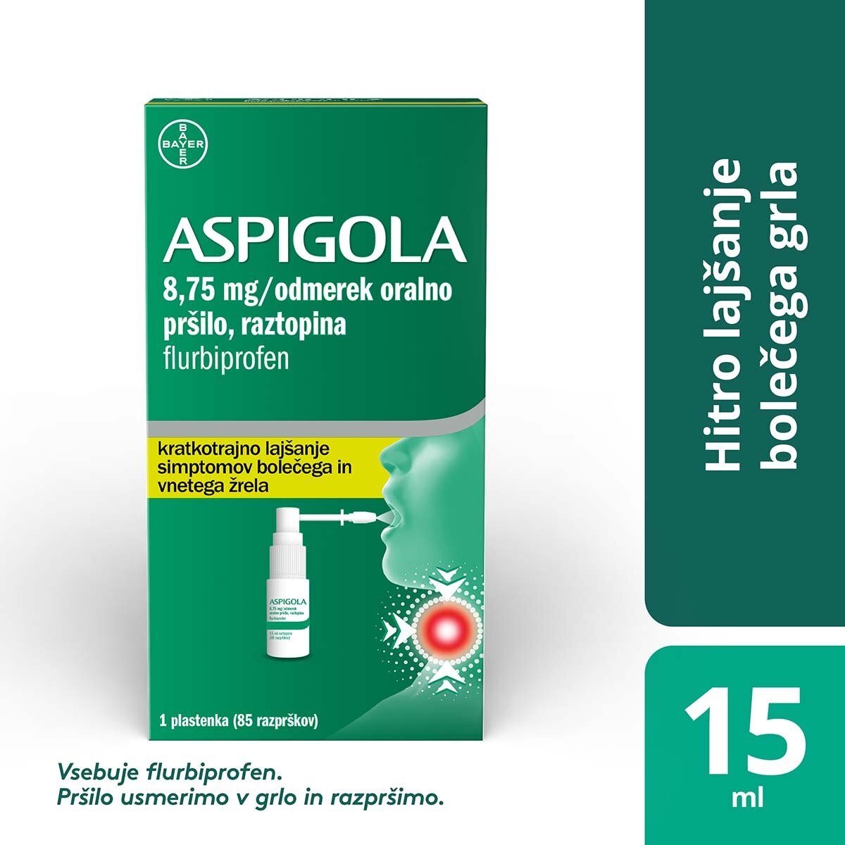 Aspigola oralno pršilo je zdravilo, ki ga uporabljamo za kratkotrajno lajšanje simptomov bolečega in vnetega žrela, kot so bolečina in oteklina žrela ter težko požiranje. Primeren je za odrasle, starejše od 18 let.