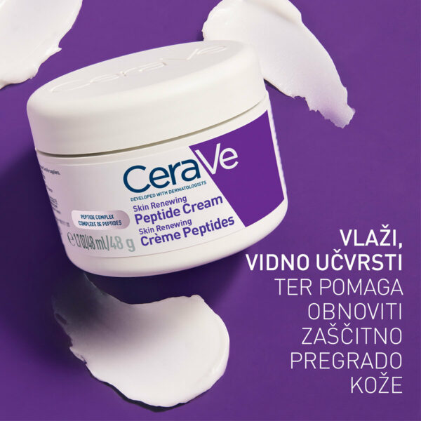 Cerave obnovitvena krema s peptidnim kompleksom hidratizira, vidno učvrsti za gladko in revitalizirano kožo, ter pomaga obnoviti zaščitno pregrado kože.