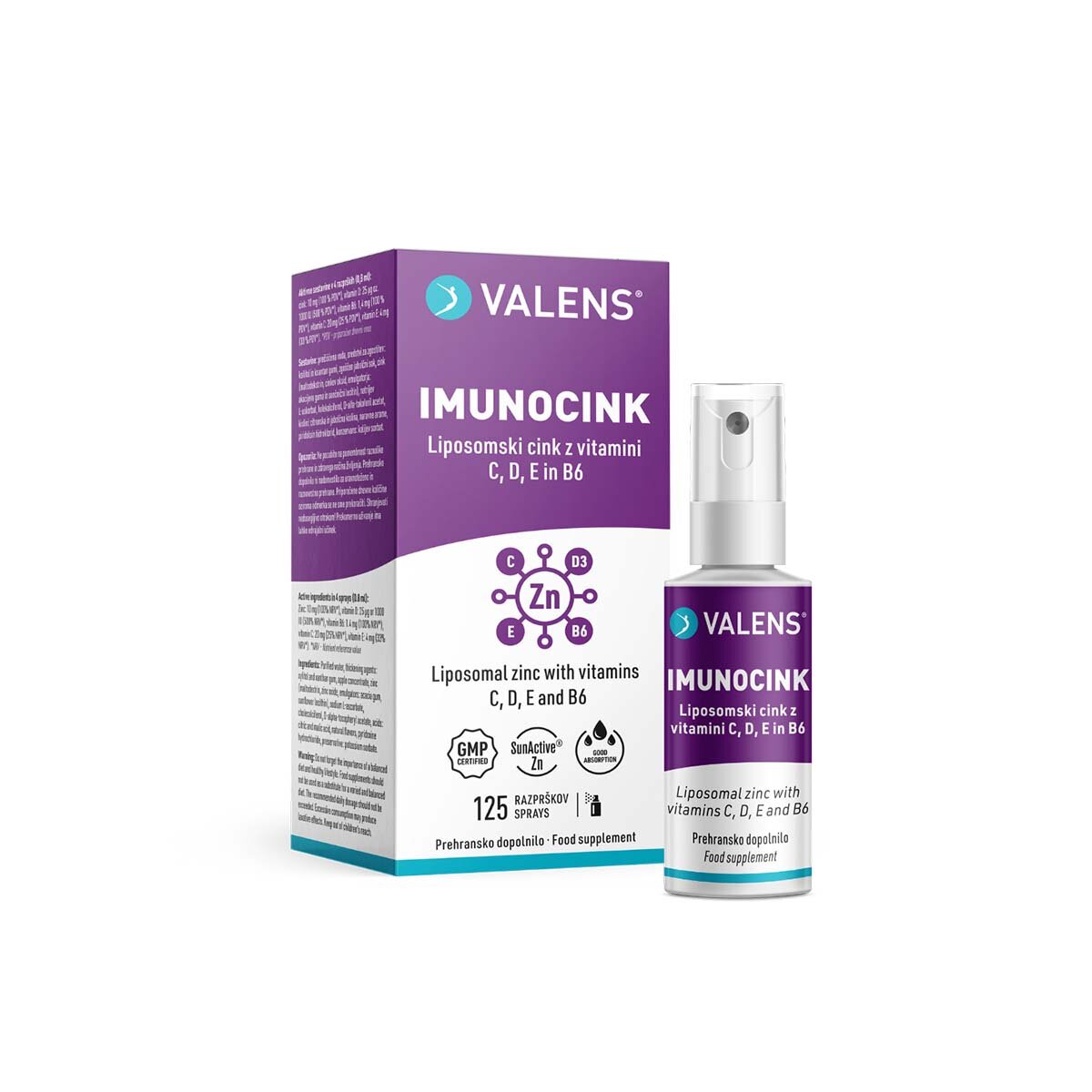 Valens ImunoCink ustno pršilo združuje cink, vitamin E ter vitamine C, D in B6, ki prispevajo k delovanju imunskega sistema. Cink ima vlogo tudi pri ohranjanju zdravih las, nohtov in kože ter pri plodnosti in razmnoževanju. Posebna patentirana oblika liposomskega cinka ter oblika ustnega pršila zagotavlja dobro absorbcijo, ki se začne že v ustni votlini.