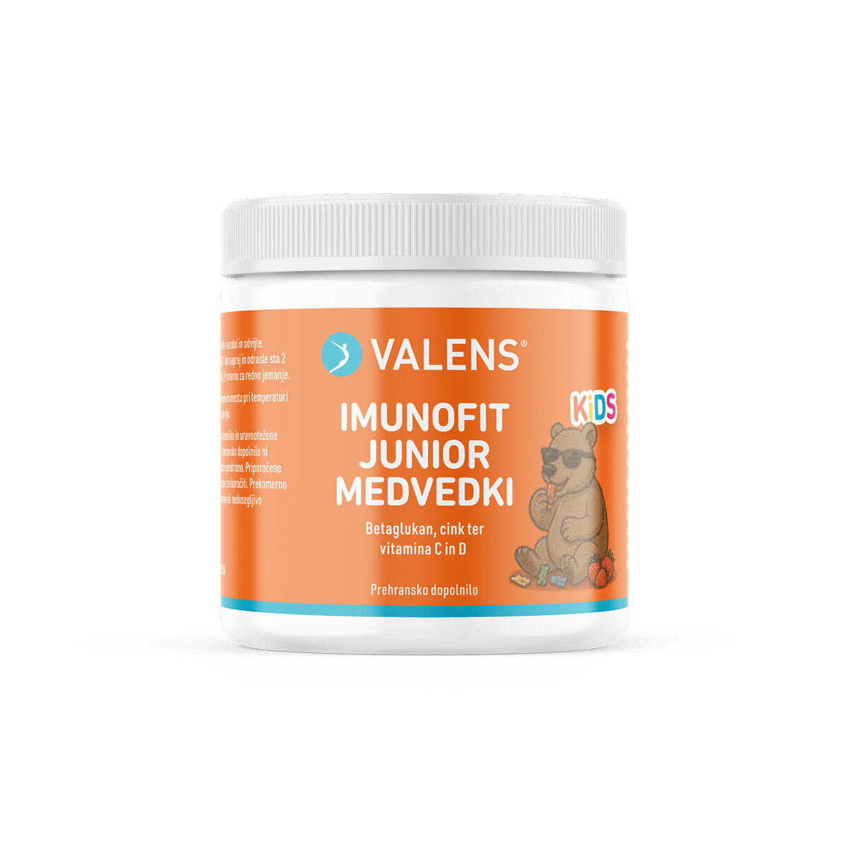 Valens Imunofit Junior medvedki so zasnovani za podporo otrokom v prvih letih življenja, ko aktivno raziskujejo svet, se učijo in razvijajo. Otroški dnevi so polni igre, učenja in novih izzivov in medvedki pomagajo, da so pripravljeni na male vsakodnevne preizkušnje, pri čemer postane dnevna rutina zabavna, enostavna in zelo okusna. Brez meric, brez prepirov, le nasmehi in mehki gumi medvedki.