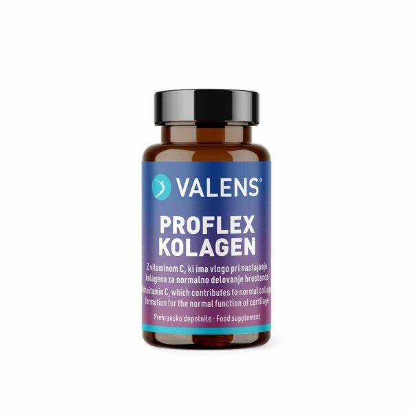 Valens Proflex Kolagen kapsule so inovativno prehransko dopolnilo v obliki kapsul za celovito podporo kostem, hrustancu in drugim vezivnim tkivom, ne glede na starost in stopnjo telesne aktivnosti. Vsebuje nativni kolagen tipa II, izvleček bosvelije, hialuronsko kislino in resveratrol.